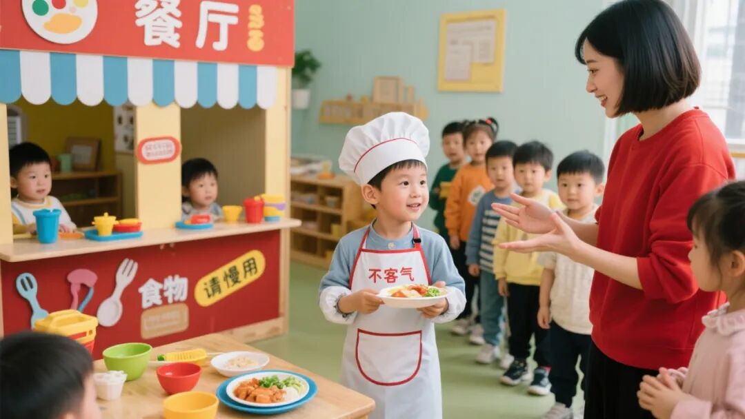 在情景里反复练习:大人精心创设自然的场景,让孩子在玩玩具、角色扮演的互动中,一次次练习礼貌的表达,让这些行为慢慢成为习惯。